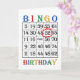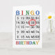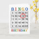 52º cartão de aniversário. Diga Parabéns a um jogador de bingo com um cartão de bingo. A idade está circulada em vermelho. Um jogador maluco do bingo vai ter um grande pontapé neste cartão! Norma Cornes.