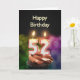 Um bolo de aniversário com velas. As velas são compostas pelo número 52, por 52 anos. Um cartão de aniversário adequado para todos.
