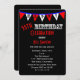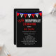 Este divertido 55º convite de aniversário apresenta um tema de montagem com bandeiras brancas e vermelhas com dentro H A P Y em um pano de fundo preto. Uma tipografia divertida é usada para os detalhes do aniversário para fazer um convite moderno para uma celebração de 55 anos para homens. Direitos autorais