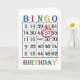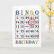 57º Cartão de aniversário. Diga Parabéns a um jogador de bingo com um cartão de bingo. A idade está circulada em vermelho. Um jogador maluco do bingo vai ter um grande pontapé neste cartão! Norma Cornes.
