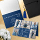 Adicione suas cinco fotos favoritas à frente destes marinhos de anúncios de graduação dobrados em azul com a palavra formando em letra chic juntamente com seu nome e ano de aula. Os detalhes do seu anúncio estão no dentro. Mais designs e cores feitas em nossa loja, incluindo convites de festas, cartões salve a data e postais.