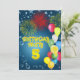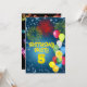 Um convite de aniversário divertido com cores felizes, balões e fogos de artifício. Veja toda a gama de convites e cartões na minha loja.