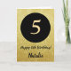 5 Happy Birthday Black and Dourado Glitter Card com nome personalizado. Para mais personalização, clique no botão "Personalizar" e use nossa ferramenta de design para modificar este modelo.