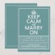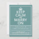 Este é um design elegante bonito para todos seus produtos do casamento. É o poster clássico da guerra do vintage "mantem a calma e continua" reformulado "mantem a calma e casa-se em" e está-se disponível em uma vasta gama de produtos, tudo facilmente customizável a suas necessidades exatas. É vazio disponível, ou com uma silhueta de um casal loving, termina com corações do amor.