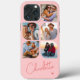 5 Foto Moderna Tendy Simple Heart Personalised Name iPhone Capa de telefone apresenta cinco de suas fotos favoritas com seu nome personalizado em um elegante script de caligrafia rosa acentuado com coração amoroso. Personalize editando o texto na caixa de texto fornecida. Perfeito para o aniversário, Natal, Dia de as mães, chás de fraldas, chás de panela, mãe, irmã, primos, melhores amigos e muito mais. DICA DA FOTO: centralize sua foto antes de carregá-la no Zazzle. Elaborado por ©Evco Studio www.zazzle.com/store/evcostudio