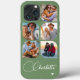 5 Foto moderna Trendy Simple Heart Personalised Name iPhone Capa de telefone apresenta cinco de suas fotos favoritas com seu nome personalizado em um elegante script de caligrafia branca, acentuado com coração de amor. Personalize editando o texto na caixa de texto fornecida. Perfeito para o aniversário, Natal, Dia de as mães, chás de fraldas, chás de panela, mãe, irmã, primos, melhores amigos e muito mais. DICA DA FOTO: centralize sua foto antes de carregá-la no Zazzle. Elaborado por ©Evco Studio www.zazzle.com/store/evcostudio