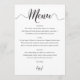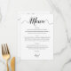 Este cardápio de casamento preto e branco é o acessório perfeito para qualquer mesa de casamento. Por favor, veja a minha loja Zazzle para ver o gráfico de assentos correspondente e os números de mesa.