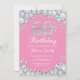 60º Aniversário Convite Rosa e Diamante Prateado