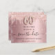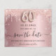 Uma cinta e uma moda Salve a placa Date para uma 60ª festa de aniversário. Fundo de gradiente cor-de-rosa embebido decorado com gotas e poeira cor-de-rosa e cinza-prateada suave. Personalize e adicione uma data e um nome/texto. O texto: Salvar a Data é gravado com um script de estilo com letra de tendência grande com alternâncias. Número 60 com uma fonte no estilo do balão.