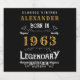 Nascer de aniversário personalizado em 1963. Adicione o seu nome, rótulos de garrafa de vinho espumante de aniversário. Edite o nome e o ano com o modelo fornecido. Uma maravilhosa ideia de aniversário preto. Mais presentes e material de festa disponíveis com o design "Legendário" na loja.