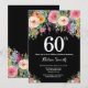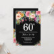 60º Aniversário do 60º Convite para Mulheres. Flor Floral de Água. Plano de fundo do quadro negro. Rosa, Amarelo, Laranja, Flor Roxo. Aniversário Adulto. Para mais personalização, clique no botão "Personalizar" e use a ferramenta design para modificar este modelo.