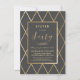 Este elegante e moderno convite para comemoração de 60 anos pode ser personalizado para sua ocasião especial. Apresenta uma estrutura dourada e linhas geométricas de fundo douradas. A palavra "Sessenta" está em uma fonte de script de na moda. A cor de fundo e o texto podem ser alterados para seu gosto. Um convite perfeito para o aniversário de um adulto.
