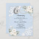 Para um elegante e romântico 60º aniversário de casamento. Um fundo azul claro decorado com flores, rosas, diamantes falsos e rendas brancas. Personalize e adicione sua foto, nomes e detalhes. 1 folha = 1 convite impresso de borda a borda.