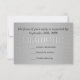 Elegante RSVP para o Festa de Aniversário do 60º casal Diamond. Esta design combina com os nossos Convites de Aniversário de Casamento de Diamante. Adicione nomes à frente, edite RSVP por data no verso. O casal também pode adicionar envelopes de coordenação e postagem se eles escolherem nossos convites de festas correspondentes.