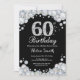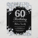 60º Convite de Aniversário. Fundo do Quadro do Diamante do Silver Rhinestone. Convidado Elegante Birthday Bash. Preto e Branco. Aniversário Adulto. Mulheres Aniversário. Homens Aniversário. Para mais personalização, clique no botão "Personalizar" e use nossa ferramenta de design para modificar este modelo.
