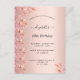 Um convite moderno e bolsa mensageifesta de aniversario elegante para uma 60ª festa de aniversário. Um rosa de ouro cônico é metálico, com aspecto de folha de fundo decorado com prigos botânicos, florais e folhagem cor-de-rosa e rosa. O nome é escrito com um script de estilo manchado de tendência com alternâncias. Texto preto. Para manter as hastes, exclua apenas o nome da amostra, deixe os espaços ou emoji na frente e depois do nome. Traseira: fundo metálico falso rosa dourado. Dica: Se você não quiser que pareça um cartão postal, clique em personalizar, vá para o verso e remova o divisor e o carimbo de posto.