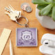 60th chaveiro elegante da celebração do aniversário com um quadro roxo do vintage, grande número e fita (o 60th e do "a celebração aniversário" não são customizáveis). Somente o nome é customizável.