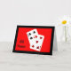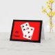 Um 6 de Paus e um 5 de Copas, fotografados contra um fundo vermelho brilhante, são o assunto do meu Cartão de Aniversário "65 Anos É Um Grande Negócio".