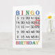 65º Cartão de aniversário. Diga Parabéns a um jogador de bingo com um cartão de bingo. A idade está circulada em vermelho. Um jogador maluco do bingo vai ter um grande pontapé neste cartão! Norma Cornes.
