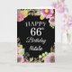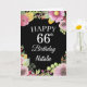 66.º Aniversário das Flores Florais de Aquarelas - Cartão Preto com nome e idade personalizados. Para mais personalização, clique no botão "Personalizar" e use nossa ferramenta de design para modificar este modelo.