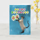Um gato siamês brincalhão perseguindo balões. Um excelente para um amante de gatos enviar um cartão de aniversário.
