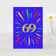 Um cartão de aniversário explosivo de 69 anos! Que maneira maravilhosa de enviar cartões de aniversários. O número 69 em amarelo brilhante com uma explosão de cores brilhantes e estrelas.