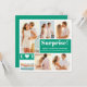 Todos vão adorar ver suas fotos de noivado. Este anúncio de noivado com colagem de 6 fotos lhe dá uma ótima oportunidade para mostrá-las. Os dois quadrados esmeralda verdes contêm seu texto. Todo o texto branco pode ser editado para criar seu toque único. Eu adicionei um Surpresa! Em seguida, duas linhas de texto no quadrado grande; no menor, eu inseri seus monogramas separados por um coração.