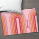 Um design boêmico curvo com um padrão listrado e formas circulares em cores cor rosa, laranja e vermelho do sol. Um design ousado, mas mínimo, com uma área opcional para adicionar texto.