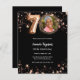 Um convite para fotos moderno e na moda para uma festa de aniversário 70. Um fundo preto clássico, decorado com estrelas douradas rosa. Personalize e adicione os detalhes da sua festa. 1 folha = 1 convite impresso de borda a borda.