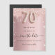 Uma cinta e uma moda Salve a placa Date para uma festa de aniversário 70. Um plano de fundo cor-de-rosa pincelado decorado com ouro rosa e brilho falso prateado, faíscas. Personalize e adicione uma data e um nome/texto. O texto: Salvar a Data é gravado com um script de estilo com letra de tendência grande com alternâncias. Número 70 com uma fonte no estilo do balão.