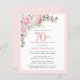 Molho cor-de-rosa pincelado com uma elegante disposição floral rosa rosa rosa rosa no canto superior esquerdo. O 70 está escrito em uma bela textura de rosa dourado. design bonito e feminina.