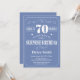 Surpresa 70 de Aniversário Invitation Typografia Azul e Branca. Fundo Azul. Aniversário Adulto. Homens ou Mulheres Aniversário. Meninos Meninos ou Meninas Meninas Meninas Adolescentes Convidam. 13 15 16º 18º 20 21rua 30 40º 50º 60º 80 de 70 100º. Qualquer Idade.