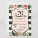 70 de Surpresa Convite de Aniversário para Mulheres. Convidar Festa de aniversário Preta e Dourada. Dourada Glitter. Flor Floral Cor de Água Rosa. Black and White Stripes. Digital Imprimível.Para mais personalização, clique no botão "Personalizar" e use a ferramenta design para modificar este modelo.