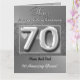Cartão de saudação personalizado de platina de 70 ano de casamento de aniversário para a esposa, com nome e design de corações de amor. Pode ser totalmente personalizado para casais, marido ou esposa. Design de cartão de 50 anos de luxo personalizado com nome e data.