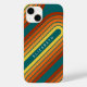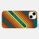 Um design boêmico curvado com padrão listrado e formas circulares em cores sunset amarelo, laranja e vermelho de tijolo. Um design ousado, mas mínimo, com uma área opcional para adicionar texto.