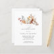Abóbora branca moderna e elegante e flores de queda design floral. A paleta de aquarelas moles é uma sofisticada mistura de cor-de-rosa macio e ouro amarelo e castanho rico em escuro. A queda deixa à volta da abóbora branca para uma apresentação especial no outono. Perfeito para a sua festa de aniversário de outono.