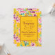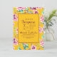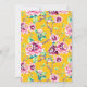 Convite de aniversário surpresa para uma senhora de 75 anos. Projetado com flores cor-de-rosa brilhantes e folhas verdes sobre fundo amarelo-escuro.