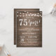 75º Convite de Aniversário de Casamento. Fundo Rustic Wood. Luzes de Corda. 1rua, segundo, 3º, 4º, 5, 10º, 15, 20, 25, 35º, 45º, 45º, 50º, 55º, 60º, 65º, 70, 75º, 80, Qualquer Ano. Aniversário Adulto. Mulher ou Festa de aniversário masculina. Para mais personalização, clique no botão "Personalizar" e use nossa ferramenta de design para modificar este modelo.