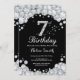 Convite de aniversário de 7. Fundo do Quadro do Diamante do Silver Rhinestone. Convidado Elegante Birthday Bash. Preto e Branco. Aniversário de criança. Aniversário. Aniversário da Garota. Para mais personalização, clique no botão "Personalizar" e use nossa ferramenta de design para modificar este modelo.