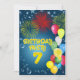 Um convite de aniversário divertido com cores felizes, balões e fogos de artifício. Veja toda a gama de convites e cartões na minha loja.