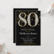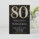 Um elegante convite de aniversário de preto e ouro, com 80 grandes diamantes e aparência de ouro junto com uma cortina de ouro brilhante. Para o 80 na sua vida.