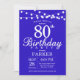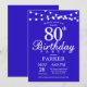 80 Birthday Invitation com luzes de cordas. Fundo Azul Real. 13 15 16º 18º 20 21 rua 30 40º 50º 80 de 60º 70 de 100º, qualquer idade.