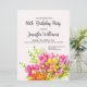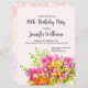 Feliz flores cor-de-rosa e laranja, carta de convite para 80 com uma pintura colorida de cor-de-água de um buquê de flores.