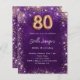 Celebre um 80 especial de aniversário com este convite maravilhoso, perfeito para uma festa elegante. O fundo roxo profundo apresenta uma bela textura irregular, acentuada por rosa dourado e faíscas ouros. O nome é escrito em um texto delicado, escrito à mão, acrescentando um toque personalizado e sofisticado. Personalize o convite adicionando o nome e todos os detalhes importantes da parte. Este design luxuoso dá o tom para uma celebração inesquecível. 1 folha = 1 convite impresso de borda a borda.