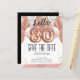 Olá, festa de aniversário 80, salve os balões rosa-brilho de data. Salve os balões rosa dourados com brilho rosado sujo. Menina, elegante, moda. Fácil de ajustar modelo.