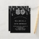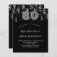 Um convite moderno, na moda e glamouroso para uma festa de aniversário 80. Um fundo preto, decorado com um confete prateado. O nome é escrito com um moderno estilo escrito à mão. Personalize e adicione os detalhes da sua festa. O número 80 é escrito com uma fonte do estilo do balão, padrão leopardo. 1 folha = 1 convite impresso de borda a borda.