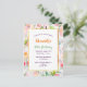 Um eterno elegante de verão e um cartão de convite de aniversário com tema de jardim. Boêmia e estilo boho. Com pastéis moles românticos e flores aquáticas, cor de rosa e pêssego, e folhas verdes. Um fundo branco para o texto. Uma imagem falsa de ouro. Modelos para um nome e detalhes da parte, scripts de estilo roxo, ouro e verde com letra manual.