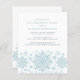 Flocos de neve de cor azul muito elegantes criam uma bonito borda ao longo do final deste convite de aniversário para adultos. A design moderna e minimalista tem uma sensação aberta e arejada. A estética contemporânea apelará a pessoas de todas as idades.