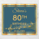 Um rótulo de garrafa de vinho espumante para uma festa de aniversário de 80 elegante, azul e dourada. Modelos para um nome, idade e data da festa. Letras coloridas com ouro. Cor de fundo lacrimogêneo e uma imagem falsa de ouro e notas de música de ouro. Você pode alterar a cor do plano de fundo para corresponder ao seu tema. Clique em personalizar e em "selecionar uma cor de fundo" à sua direita.