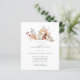 Abóbora branca moderna e elegante e flores de queda design floral. A paleta de aquarelas moles é uma sofisticada mistura de cor-de-rosa macio e ouro amarelo e castanho rico em escuro. A queda deixa à volta da abóbora branca para uma apresentação especial no outono. Perfeito para a sua festa de aniversário de outono.
